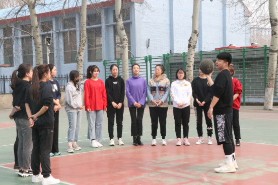 接下来进行的是院队女篮队员的选拔:比赛开始前,队员们进行了热身运动,每个人都很积极,跑步使她们的热情更加高涨。随后,她们站成整齐的一排,齐刷刷的望向教练,聆听教练对她们进行赛前指导。