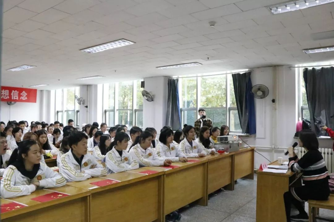 随后会议正式开始,全体师生庄严肃穆,起立奏唱团歌。袁老师指出,广大青年员工应树立共产主义远大理想和中国特色社会主义共同理想,自觉用习近平新时代中国特色社会主义思想武装头脑、指导实践、推动工作。袁老师还指出,团员们应更加努力学习,发挥团员的模范先锋作用。同学们认真聆听,现场气氛庄严热烈。