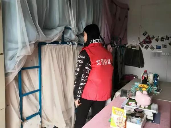 检查人员对各个宿舍的安全性、整洁性、宿舍文化三个方面进行了检查。很多宿舍总体效果不错,干净整洁,床铺上物品及其他生活用品摆放整齐,能给人一种温馨怡人的感觉。并且没有大功率用电器,宿舍安全管理制度也很完善。各宿舍都整体布局合理,具有自己宿舍的风格特色,宿舍人员文明礼貌、热情大方、态度和善能积极配合查宿舍工作。