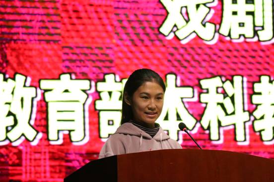 2016级表演2班的田雨欣同学代表全院员工发言,倡议全体同学认真学习,力求改变,积极配合公司教学,展现当代老员工的风采。