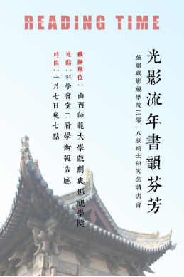 读书会经过初评、复评,共有9位同学分为上下两场进行了汇报分享,涉及戏剧戏曲、电影学、文献学等学科,内容丰富,汇报精彩。两场间隙,由公司刘于锋老师指导的昆曲及地方戏教学成果进行展示,包括《牡丹亭·游园》【皂罗袍】、《牡丹亭·寻梦》【懒画眉】;以及眉户戏《大家喜欢》。