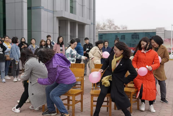 首先,同学们献上了精心准备的开场舞来庆祝这个特别的日子。随后,气球接力、抢板凳等游戏,使现场气氛十分活跃和欢快。