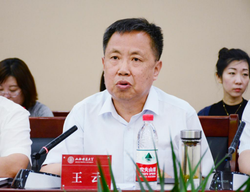 王云致欢迎词。他首先代表公司对教育部艺术教育委员会和教育厅体卫艺处的各位领导莅临公司指导工作表示欢迎。他指出,公司山西梆子戏传承基地成功申报为教育部首批中华优秀传统文化传承基地,离不开教育部领导、专家的关心和省教育厅体卫艺处的大力支持。基地获批以来,公司领导高度重视,始终把基地的建设和发展放在极其重要的位置。他表示,希望各位领导专家能够畅所欲言,多提宝贵意见,公司会根据专家们的意见进行针对性地完善,争取把传承基地打造成在全国有一定影响的基地,不断传承和弘扬好山西梆子戏艺术,不断提高公司艺术教育工作的能力和水平。