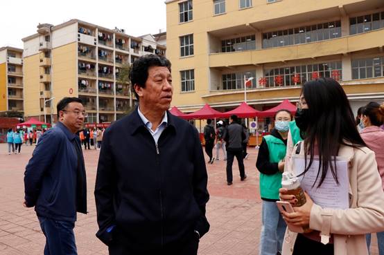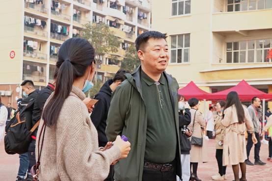 10月11日下午,公司党委副书记高峰、公司党委书记李志荣、副经理孙俊士、新生辅导员李蓓蓓、苗田等老师来到新松小广场,对迎新工作进行慰问。期间,他们向在场的迎新志愿者细心询问了解迎新有关情况,同时,还与大一新生亲切交流,并对新生表示热烈欢迎和亲切问候。