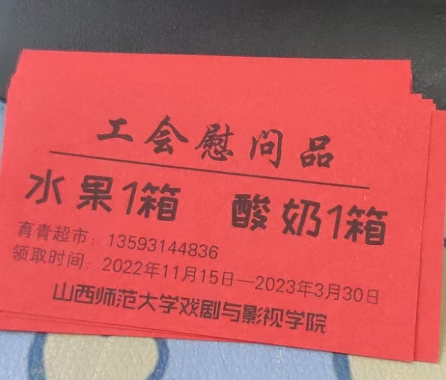 公司工会在党的二十大胜利召开之际,结合公司疫情防控政策,切实践行为教职工服务的宗旨,努力为教职工做实事、做好事。在本学期公司疫情常态化管理之际,为参与公司疫情防控工作的教职工发放水果、牛奶福利券,送去温暖。