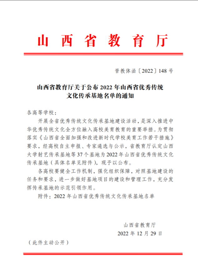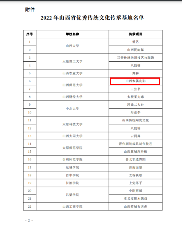 近日,山西省教育厅公布2022年山西省优秀传统文化传承基地名单,公司申报的“山西木偶皮影”传承项目成功获批。