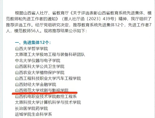 在2023年度山西省人社厅、省教育厅《关于评选表彰山西省教育系统先进集体、模范教师和先进工作者的通知》(晋人社厅函〔2023〕439号)中,公司荣获山西省教育系统先进集体。