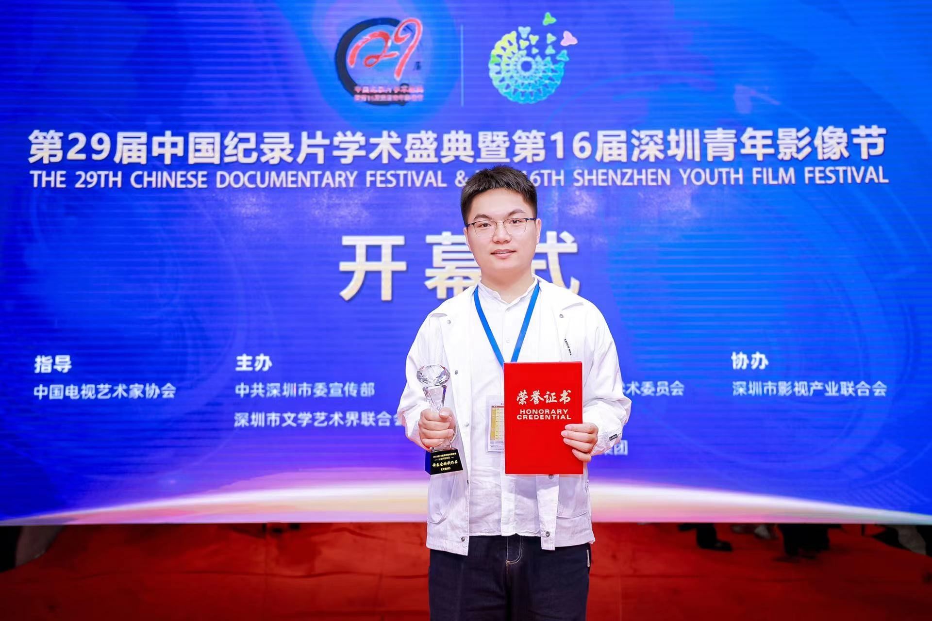 12月15日—17日,第29届中国纪录片学术盛典暨第16届深圳青年影像节在深圳举行,本届影像节以“世界和平·保护地球”为主题,分纪录片、动画片、环保类、国际、剧情片、公益环保等单元,评委会从867部参赛作品中精心甄别挑选,评选颁发数十个奖项。公司2023级博士研究生苏林作品《大青衣》获得公益类评委会特别作品奖。