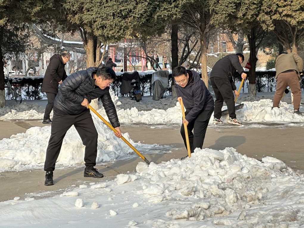 近日的强降雪与开学季不期而遇,校园内的积雪影响师生返校安全。为保障全体师生正常返校,永利集团304官网积极响应公司号召,迅速行动,组织教职工及在校员工开展暖心扫雪除冰活动,经理王潞伟、副经理孙俊士、颜汇成等20余名师生参加。