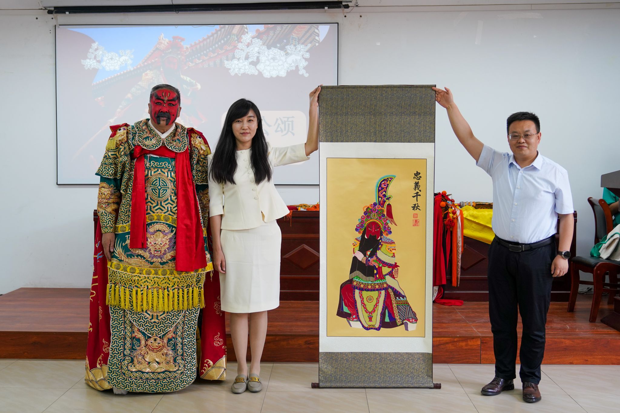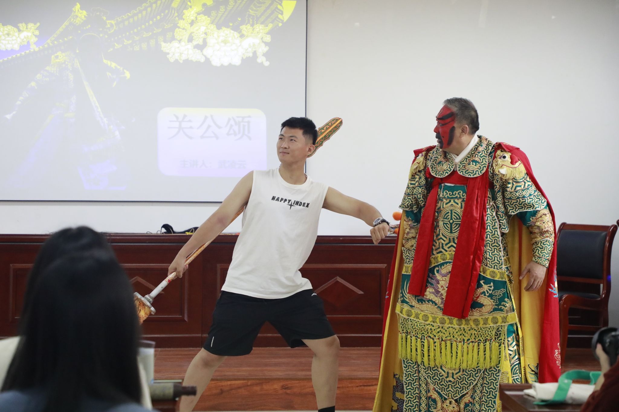 讲座结束后,武凌云还与在场的同学们展开了互动,邀请同学们现场体验饰演关羽,并亲自指导他们如何使用表演中的刀和剑。同学们对此反应热烈,积极参与。此外,武凌云还向永利集团304官网赠送了一幅关羽剪纸作品。最后,王潞伟经理作了总结发言,讲座在圆满的氛围中落下帷幕。