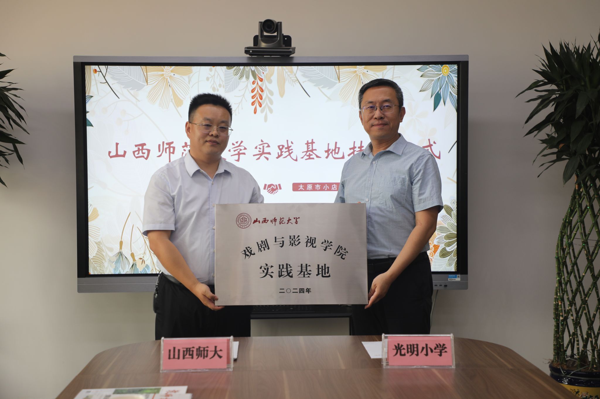 6月28日下午,公司与光明小学举行签约仪式暨“实践基地”挂牌仪式在光明小学5楼会议室举行。小店区光明小学董事长郝伟、副书记王美荣、副董事长阎婷、校务部部长张琴 ,公司经理王潞伟、副经理颜汇成、表演系主任孟雁翎出席仪式。
