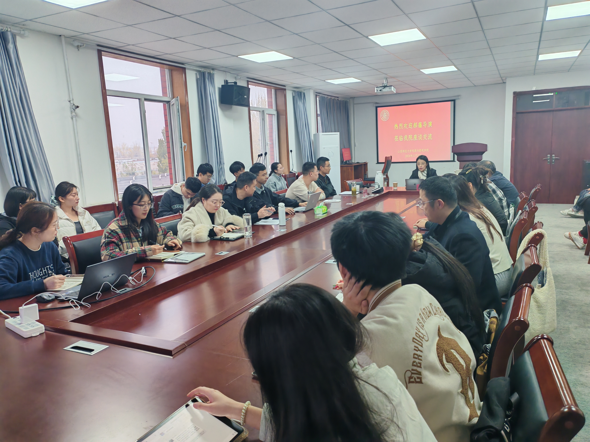 2024年11月13日下午,国家一级导演、高级编辑郝蕴导演应邀来到公司,于401会议室开展《IN—纪录片创作的经验与实践》专题讲座,此次讲座由颜汇成教授主持,公司党委书记畅海桦、副经理孙俊士及部分教师、硕博士生共同参与。