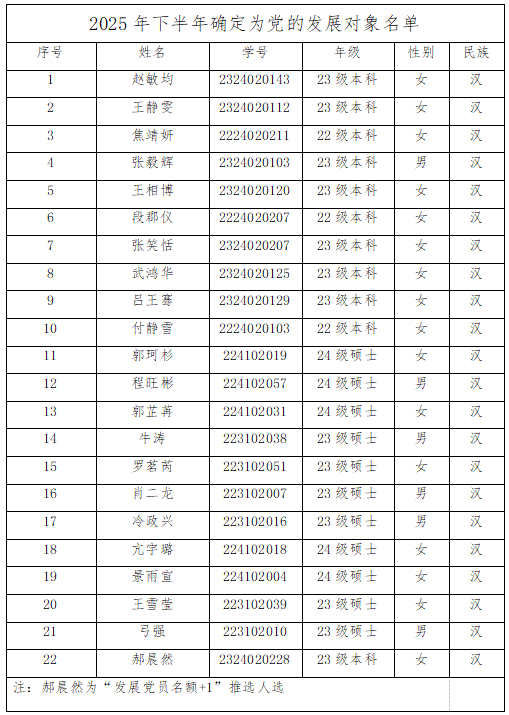 附:2025年下半年确定为党的发展对象名单