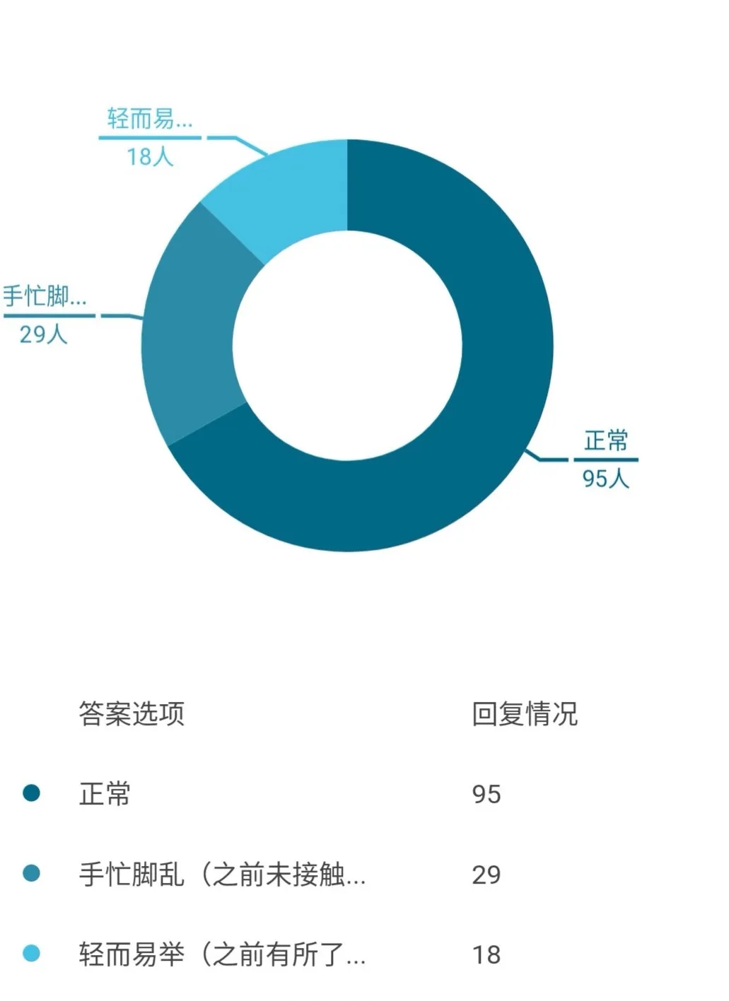 可见,''正常''占比较大,但有27人仍有''手忙脚乱''的现象,这也从侧面反映出网课学习较常规,学习有更繁杂的程序,并且在线下我们了解到不同课堂所用的网课平台也相差较大,这也给同学们带来了不少困扰。