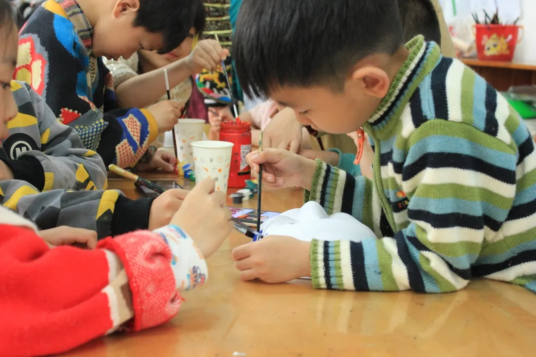 之后,员工志愿者们还用事先准备好的空白脸谱面具与小朋友们共同绘制戏曲脸谱,脸谱绘制完成之后,小朋友们拿着自己的作品争相展示,场面欢乐而又充满童趣。