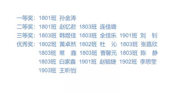 本次比赛主要通过模拟课堂与结构化问答两个环节进行比赛考核。参赛选手准备充分,教学过程设计合理,语言表达流畅,教学方法独特新颖,板书赏心悦目。选手们端庄大方、挥洒自如的仪态彰显出了公司学子良好的精神面貌。经过各位评委的选拔,本次比赛的最终结果如下: