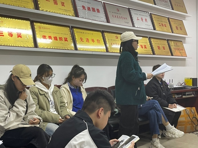 会议伊始,李蓓蓓老师对于本学期世界戏剧日活动推进要求进行了简要概述,针对世界戏剧日活动策划以及举办活动过程中可能会出现的问题进行了对应的解答与指导,细化了工作流程。之后,李蓓蓓老师同各位团委员工会成员对时间安排,宣传方法,举办形式等问题进行探讨,做出详细安排。她强调同学们应以严谨认真的态度与高效的执行力来面对工作,为活动的顺利开展而奠定基础。