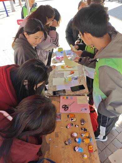 活动中,同学们在志愿者的引导下,“拼出辉煌”环节以拆分重组沂蒙革命图片的创新形式,重现历史瞬间,在碎片归位中感悟先辈牺牲精神;“剪出爱国心”与“英雄塑型”环节,则通过红船剪纸、英雄泥塑等手工创作,将抽象爱国情转化为具象艺术表达,百余件作品既是对革命岁月的致敬,更是当代青年赤子之心的实体化呈现。