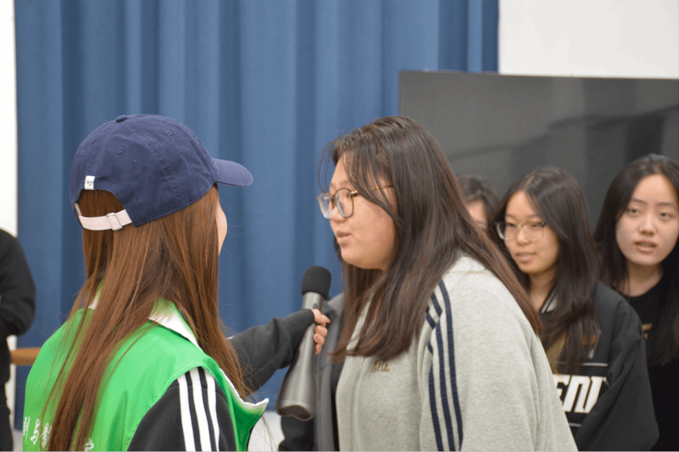 歌词与旋律的浪漫邂,同学们以“方向”“爱”“我”等意象为令,接力唱出含指定字的歌词。整个过程融合音乐记忆、反应速度与团队协作,既考验歌词储备量,也展现创意改编能力,现场笑声与掌声此起彼伏。