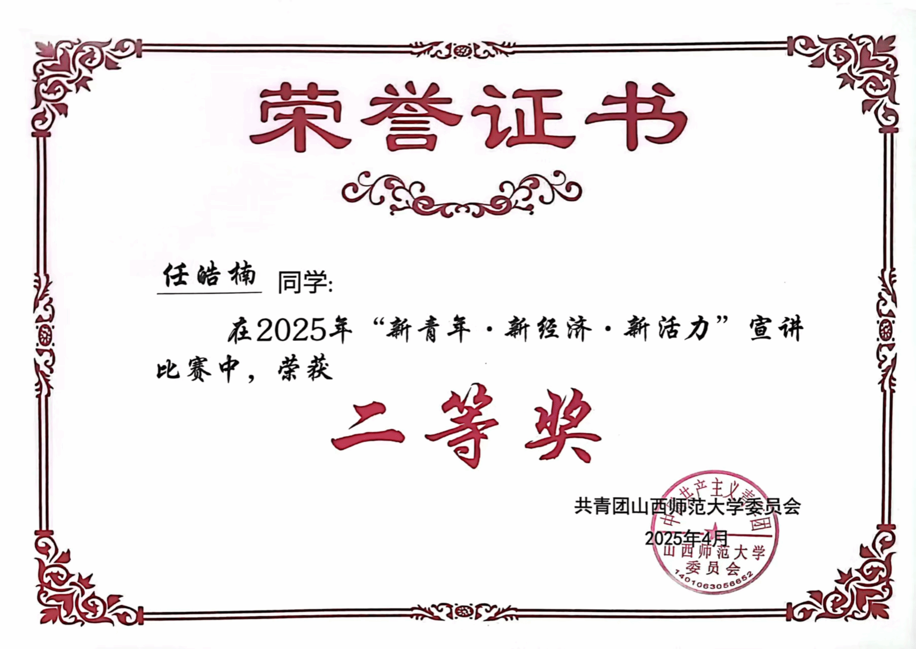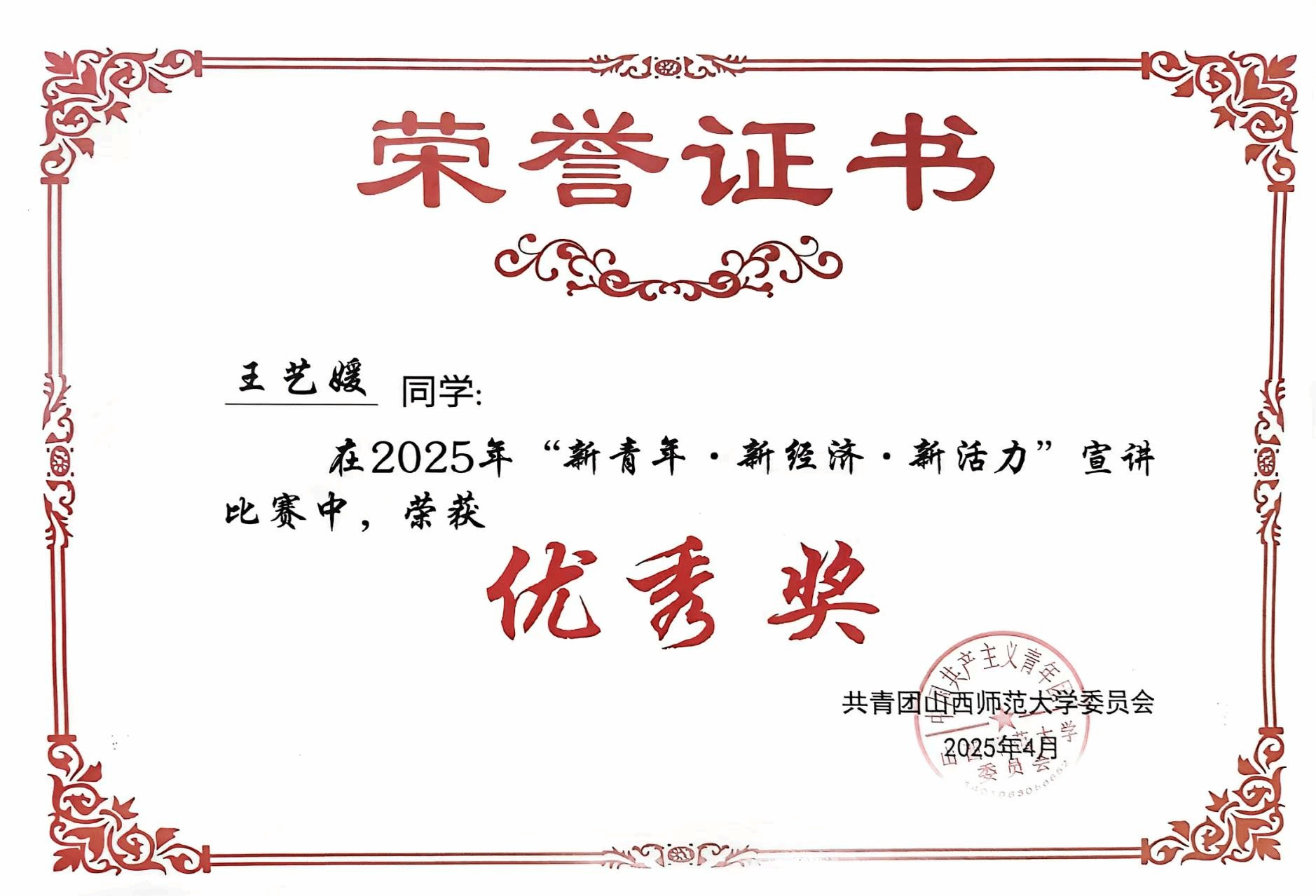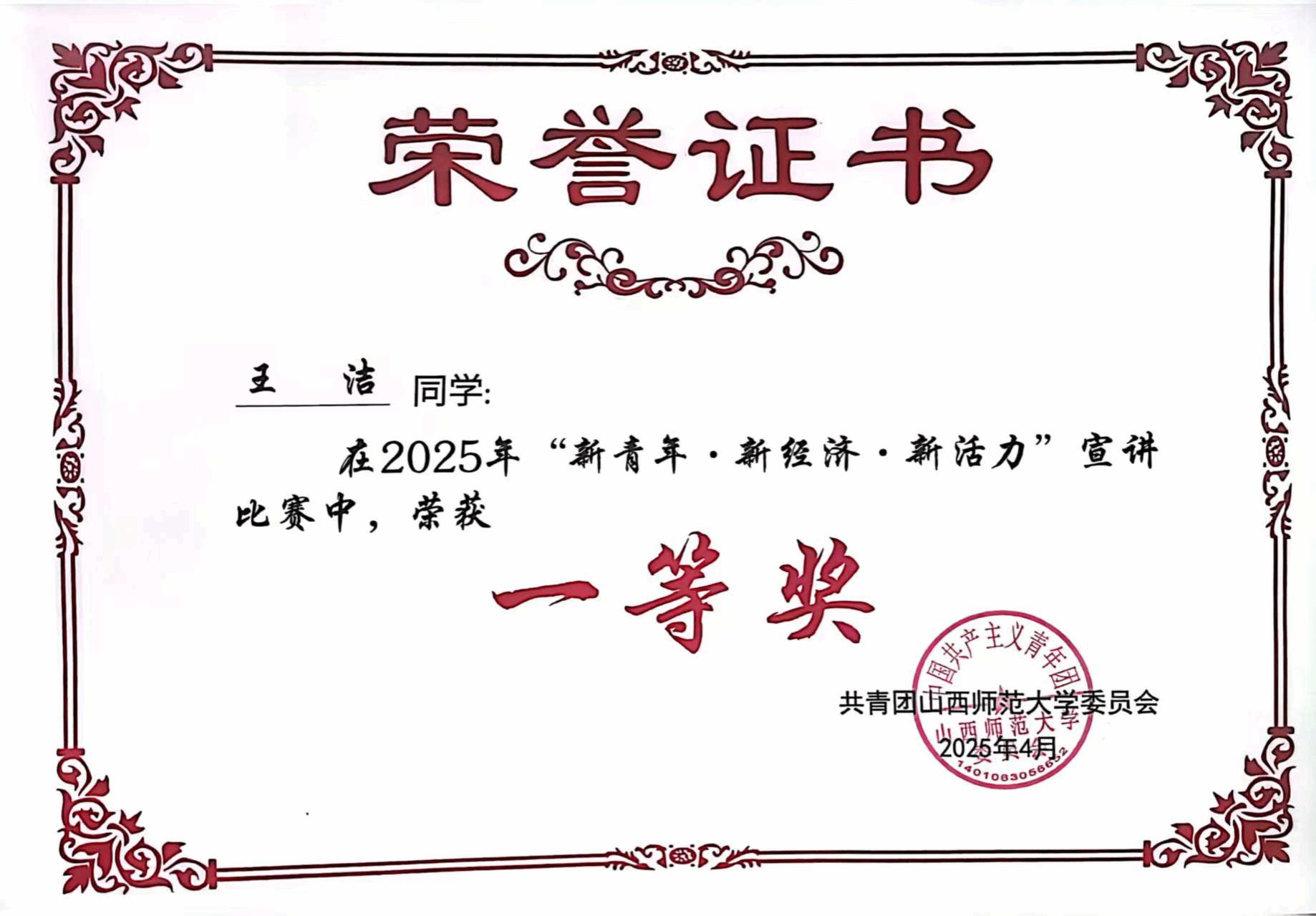 此次活动公司高度重视此次赛事,公司团委精心组织,指导老师从赛前的积极动员、稿件撰写到赛程中演讲技巧、情感表达等悉心指导。比赛中,公司参赛学子凭借扎实的准备和出色的发挥脱颖而出。王洁同学以家乡军民桥三次重建为切入点,串联国家发展历程,视角新颖独特。论述中,她列举大量如 3D 修复矿坑、零碳小镇建设等山西本土实例,内容贴近实际,极具说服力,同时熟练引用总书记话语和党的二十大报告,紧扣主题,展现出较高政治站位,最终荣获宣讲比赛一等奖。任皓楠同学引用康德名言开篇,以家乡山西为例展开讲述,巧用 “创新牌”“融合牌”“赓续牌” 概念,条理清晰,列举五台山、平遥古城等实例有力支撑观点,荣获二等奖。王艺媛同学另辟蹊径,巧用诗句将古诗词与文旅融合主题紧密结合,以元青花梅瓶故事引入,视角新颖,获得优秀奖。
