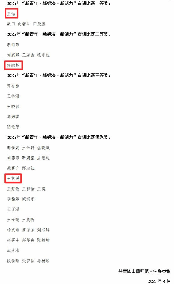2025 年 4 月 16 日,永利304官网 “新青年・新经济・新活力” 宣讲比赛在 6 号楼 504 教室圆满落幕。本次大赛围绕习近平总书记视察山西重要讲话精神,以深化公司青年马克思主义者培养工程为着力点,通过构建“赛学讲思”四位一体实践平台,持续巩固团员和青年主题教育成果,着力培养政治坚定、理论深厚、善思能辩、勇于创新的新时代马克思主义宣讲先锋。