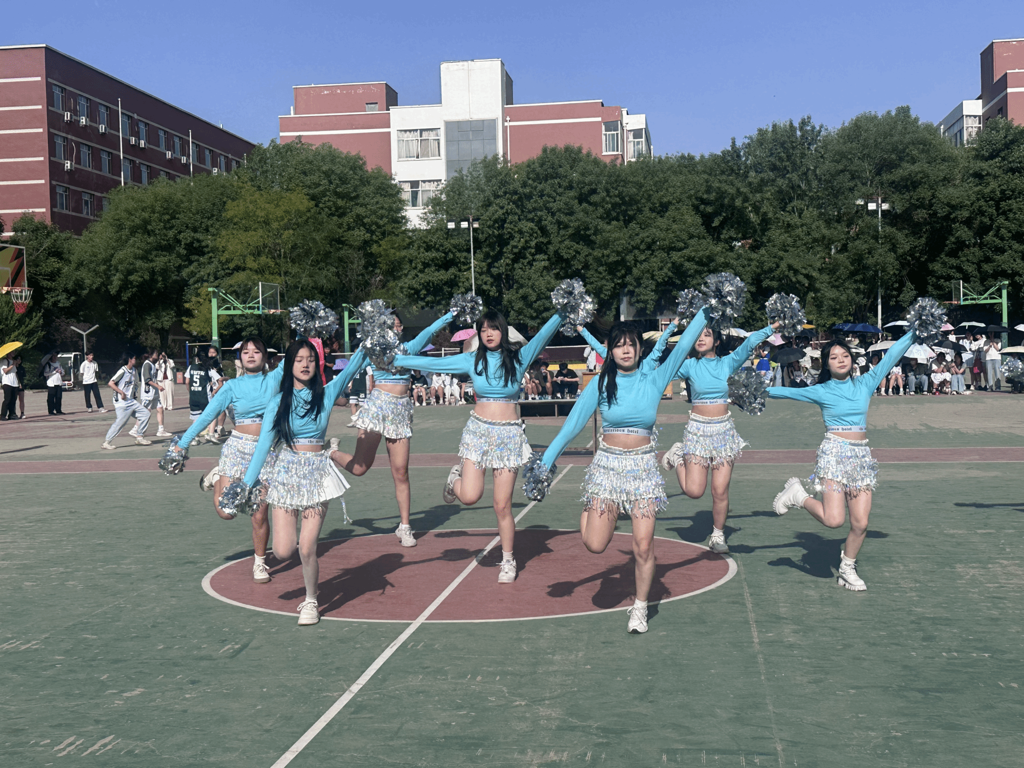 中场休息阶段,场边的啦啦队以活力四射的舞蹈开场,瞬间点燃了现场气氛。她们整齐的舞步、灿烂的笑容,与篮球场上的热血竞技相互呼应,她们为球员们加油助威,摇旗呐喊,成为赛场边一道亮丽的风景线。