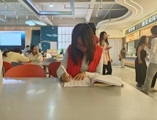 活动现场,志愿者统一身着马甲,礼貌向餐厅窗口工作人员表明来意。随后,他们仔细核对餐品价格,严格依据既定标准对比同类餐品价格差异,评估食品卫生安全与服务状况,以务实之举切实为同学们的餐饮服务保驾护航。