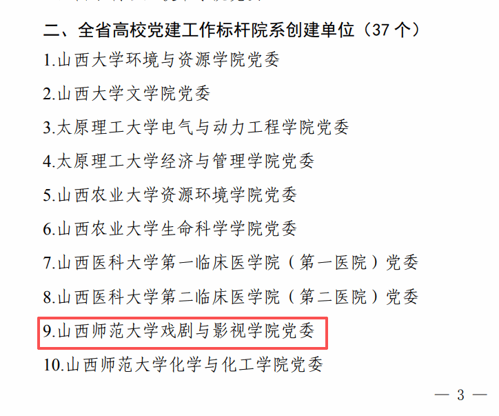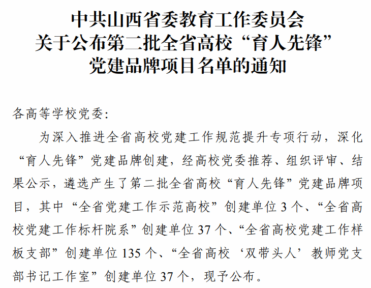 近日山西省教育厅公布的第二批高校“育人先锋”党建品牌项目拟入选名单中,永利304官网戏剧与影视公司党委成功入选“全省高公司党建工作标杆院系创建单位”,这是公司党委在党建引领育人工作中取得的又一重要成绩。